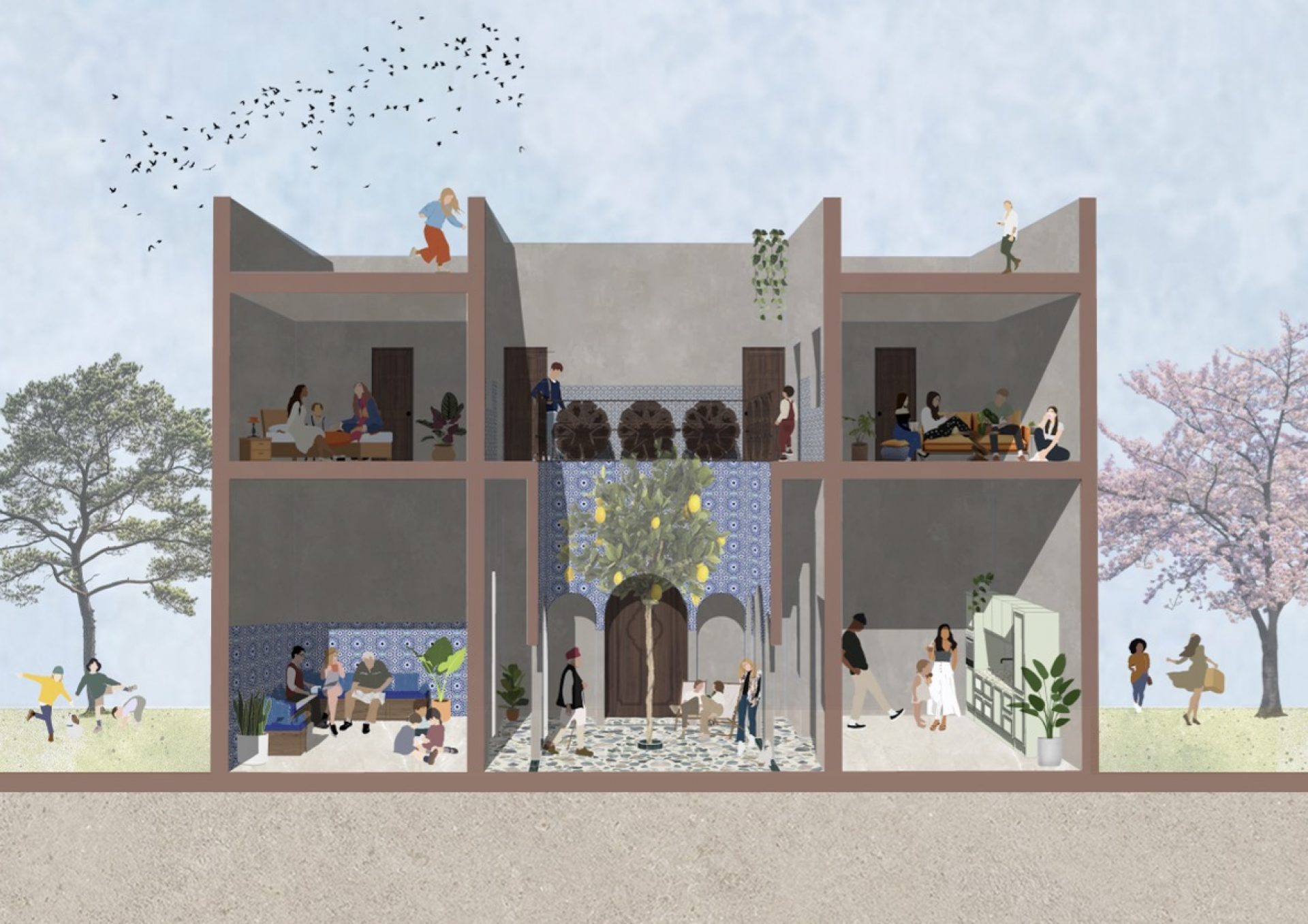 Geïnspireerd door de Marokkaanse Riad, een huis dat draait om de binnentuin, het hart van geloof, familie en gemeenschap - zoek ik naar een hedendaagse vertaling: